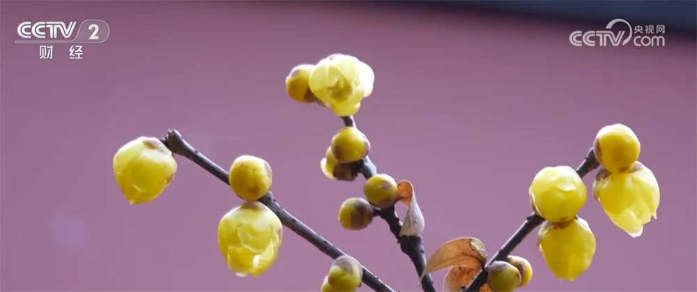 在南京的明孝陵景区,部分蜡梅已进入盛花期,簇簇金黄色小花点缀在枝干上,与周围的红墙相映成趣。不少市民和游客举起手机、相机定格这冬日里的美好景致。